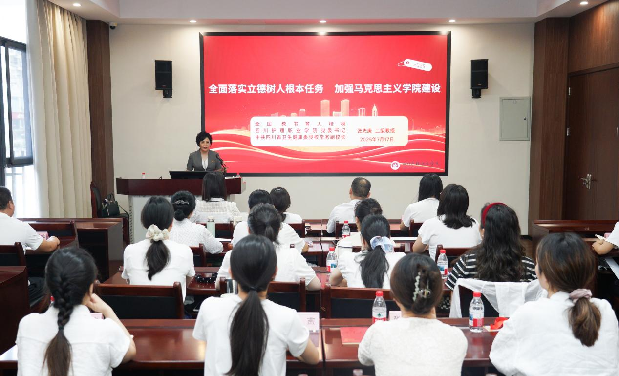 为加强新时代思政课教师队伍建设,加快马克思主义学院高质量发展,7月17日,学院党委书记张先庚教授以“全面落实立德树人根本任务 切实加强马克思主义学院建设”为题,为全体思想政治理论课教师专题研修班学员作专题授课,系统解读以思政教师队伍建设为核心的新时代马克思主义学院建设的战略目标与实践路径。