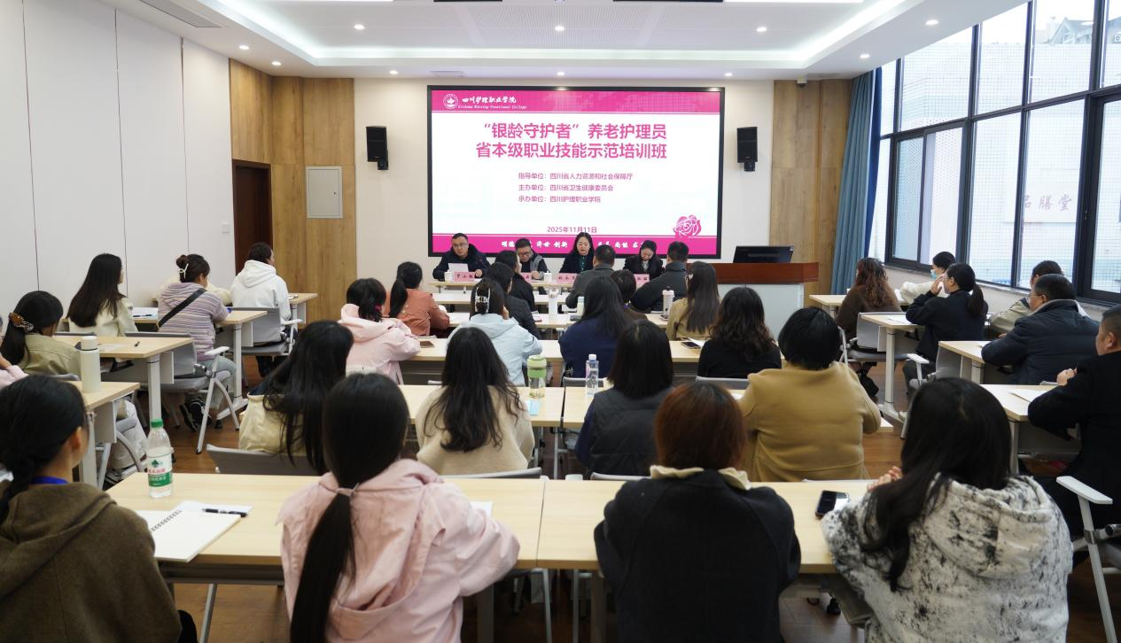 11月11日,由四川省人力资源和社会保障厅指导、四川省卫生健康委员会主办、四川护理职业学院承办的“银龄守护者”养老护理员省本级职业技能示范培训班开班仪式在成都校区举行。学院院长姚永萍、四川省就业服务管理局培训处处长池未央出席,开班式由学院党委副书记、纪委书记罗小强主持。继续教育学院、智慧护理学院相关负责人和全省首批41名养老护理骨干学员参加。