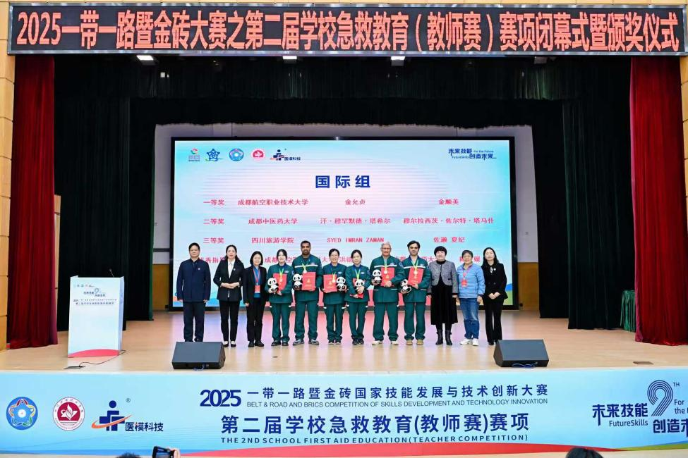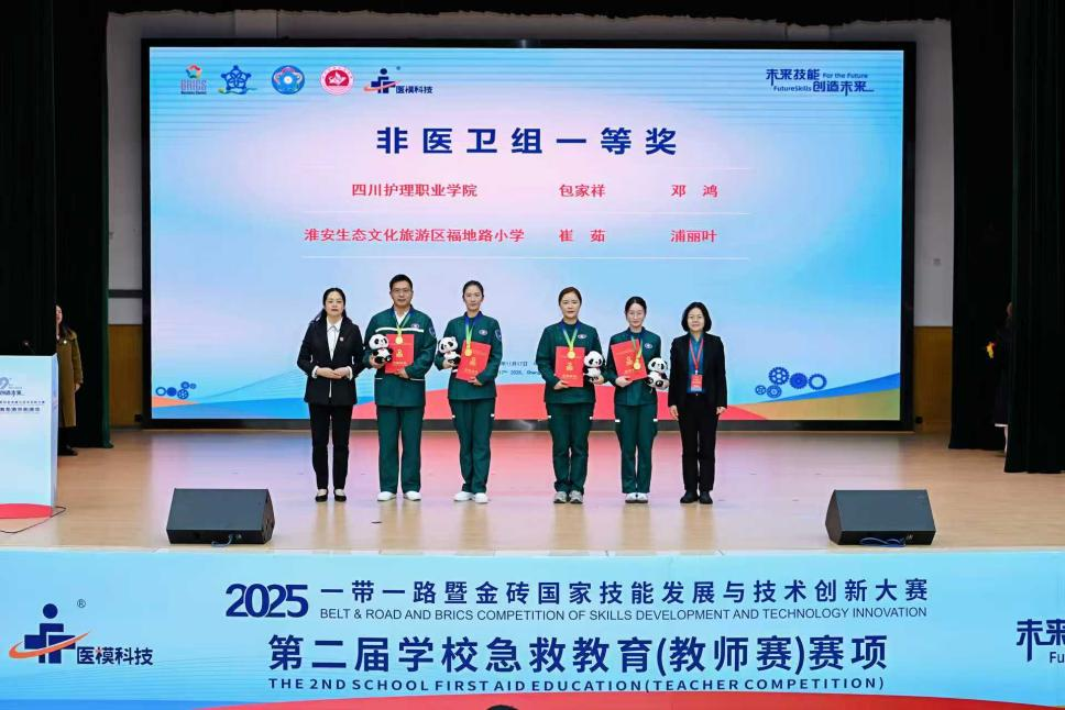11月15日至17日,2025“一带一路”暨金砖国家技能发展与技术创新大赛第二届学校急救教育(教师赛)在四川护理职业学院成都校区成功举办。本次赛事由金砖国家工商理事会中方理事会、“一带一路”暨金砖国家技能发展国际联盟、“一带一路”暨金砖国家技能发展与技术创新培训中心主办,四川护理职业学院联合承办,于17日上午圆满闭幕。我校智慧护理学院教师李英、刘洁荣获医卫组一等奖;基础学院教师邓鸿、包家祥荣获非医卫组一等奖;智慧护理学院教师曾学燕、赵翠霞荣获优秀指导教师奖;学校荣获最佳组织奖、突出贡献奖。