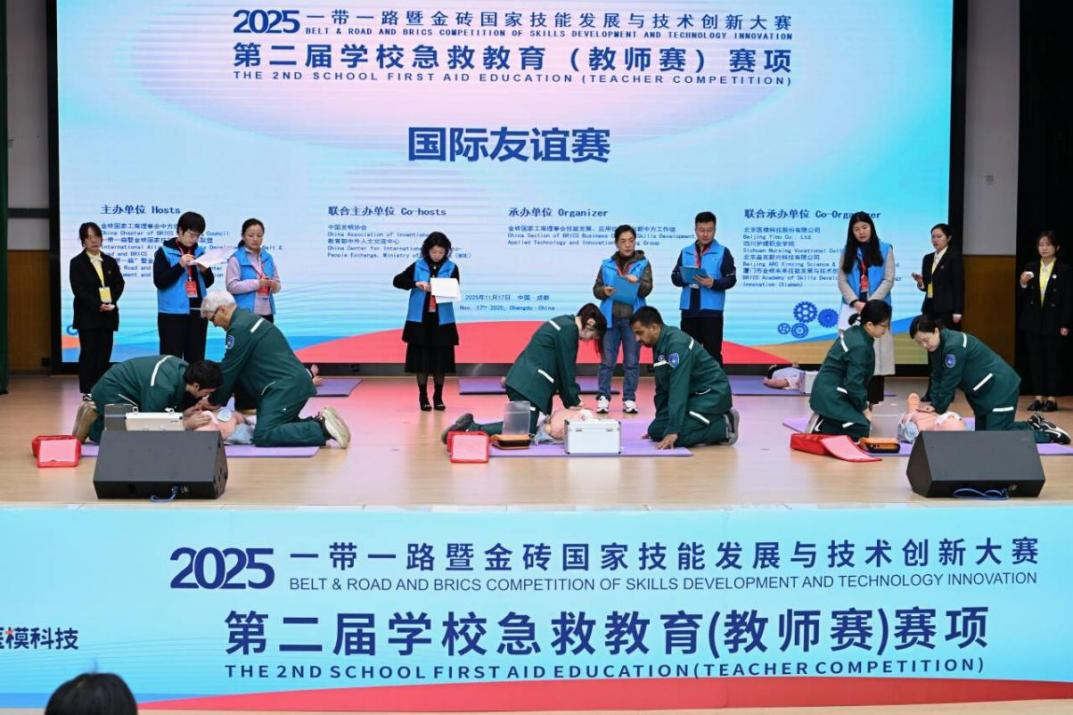 据了解,“一带一路”暨金砖国家技能发展与技术创新大赛学校急救教育(教师赛)是首次走进四川。四川护理职业学院党委书记张先庚表示,承办本次赛事,既是对学院办学实力的认可,更是推动急救教育国际交流的重要契机。作为省卫生健康委唯一主管的全日制公办卫生健康类高校和全国首批急救教育试点学校,学院始终深耕急救教育领域,已建成国家级职业教育示范性虚拟仿真实训基地和四川省红十字应急救护培训基地、具有VR、AR先进的智能信息急救实践教育优势,学校拥有200余名持证的高素质急救专业教师,开发了系列急救教育课程体系,自主研发系列急救教育软件,面向民族地区、社区家庭、学校开展300余场公益急救科普,向18个国家提供急救专业技能培训。学校作为中医药鲁班工坊副理事长单位,下一步将全面贯彻落实国家“职教出海”和“一带一路”部署,加强技能发展与技术创新,全方位优化提升急救教育体系,推动教师能力与教学质量双提升,全面提升学生急救能力,拓宽就业创业路径,促进全球急救事业与产业高质量发展。