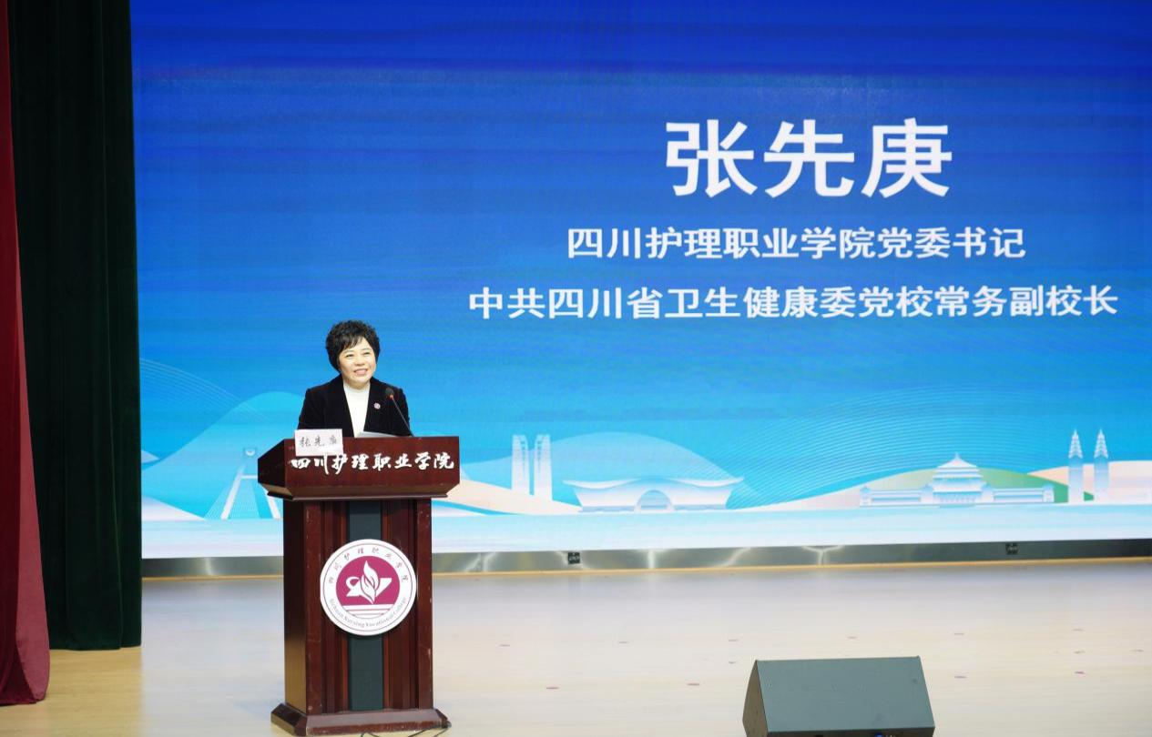 11月29日,以“产教融合聚合力、数智赋能促发展”为主题的现代智能大健康服务产教融合共同体 成都大健康产教联合体学术研讨会暨成渝双城经济圈现代护理职业教育联盟第五届研讨会在学院召开。省卫生健康委二级巡视员江涛、成都中医药大学校长曾芳、重庆护理职业学院党委书记郑泽莉,龙泉驿区教育局党组书记、局长曾涌,龙泉驿区卫健局党组书记、局长朱秀萍,学院党委书记张先庚、院长姚永萍等全体在校院领导出席,来自全国92家单位350余名代表参会。会议由学院副院长梁小利主持。