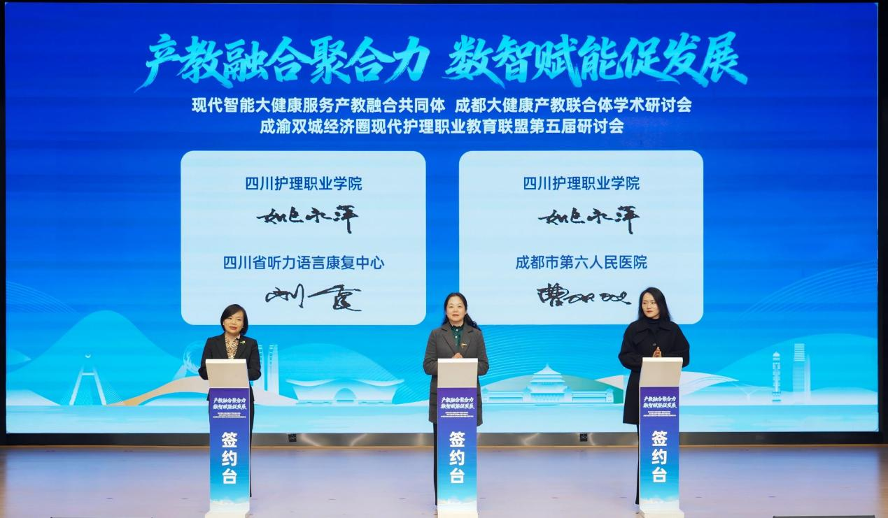 姚永萍分别与四川省听力语言康复中心、成都市第六人民医院签署产教融合战略合作协议。