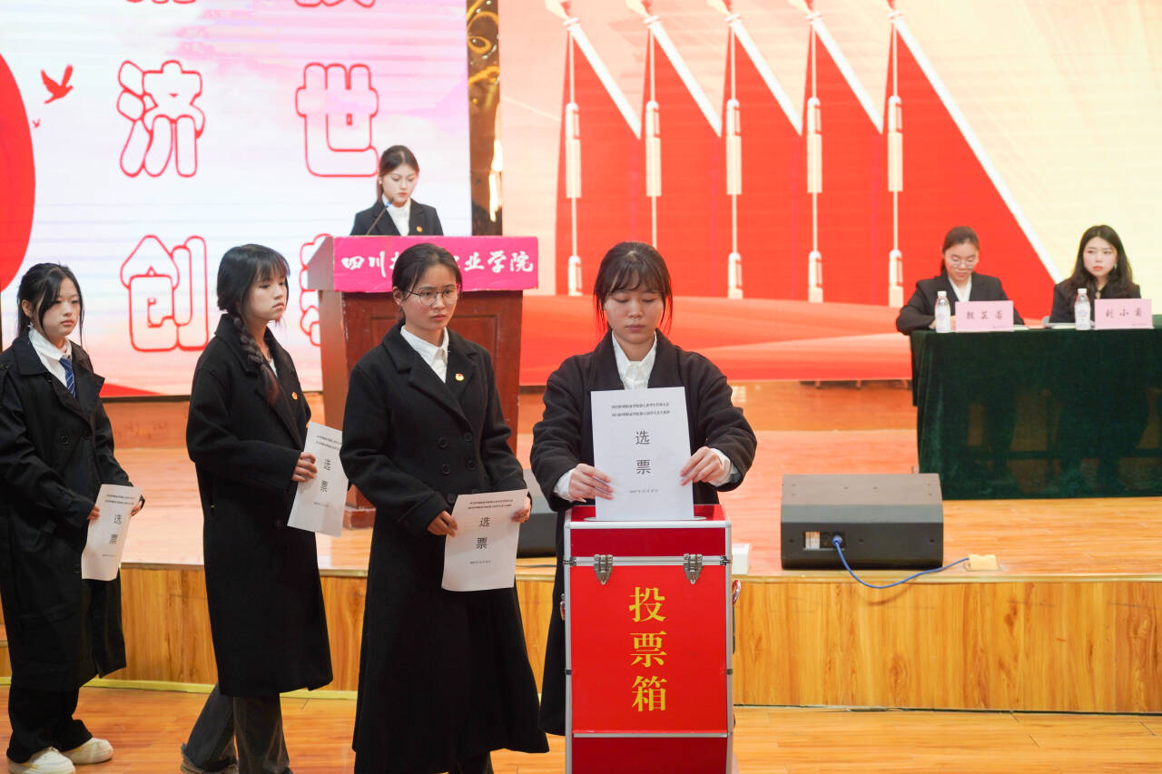 大会还审议了《四川护理职业学院第七届学生会主席团选举办法》及《四川护理职业学院第七次学生代表大会监票人、计票人建议名单》,通过民主选举产生了学院第七届主席团。