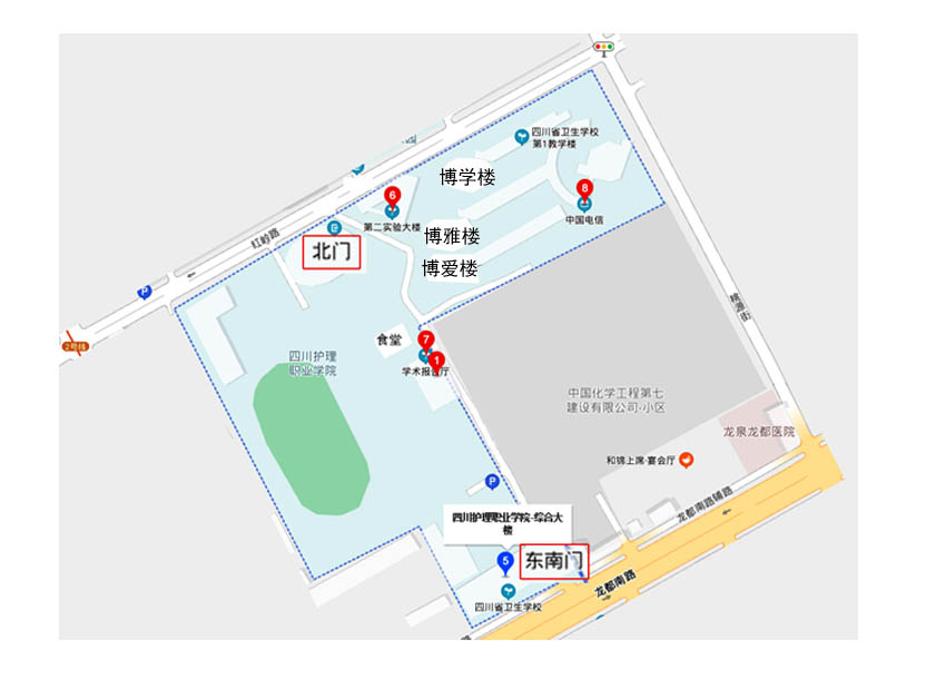 2.四川护理职业学院成都校区北门(成都市龙泉驿区红岭路1288号)
