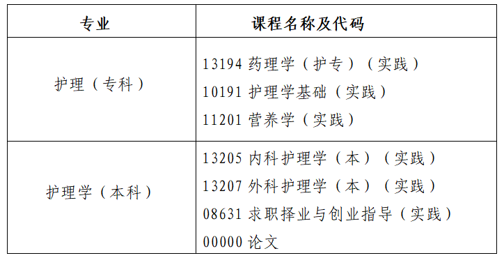 1.实践课程报考条件:对应理论课程取得合格成绩后方能报考实践环节考核,如护理学专业:13204《内科护理学(本)》理论成绩合格才能报考13205《内科护理学(本)》(实践)。