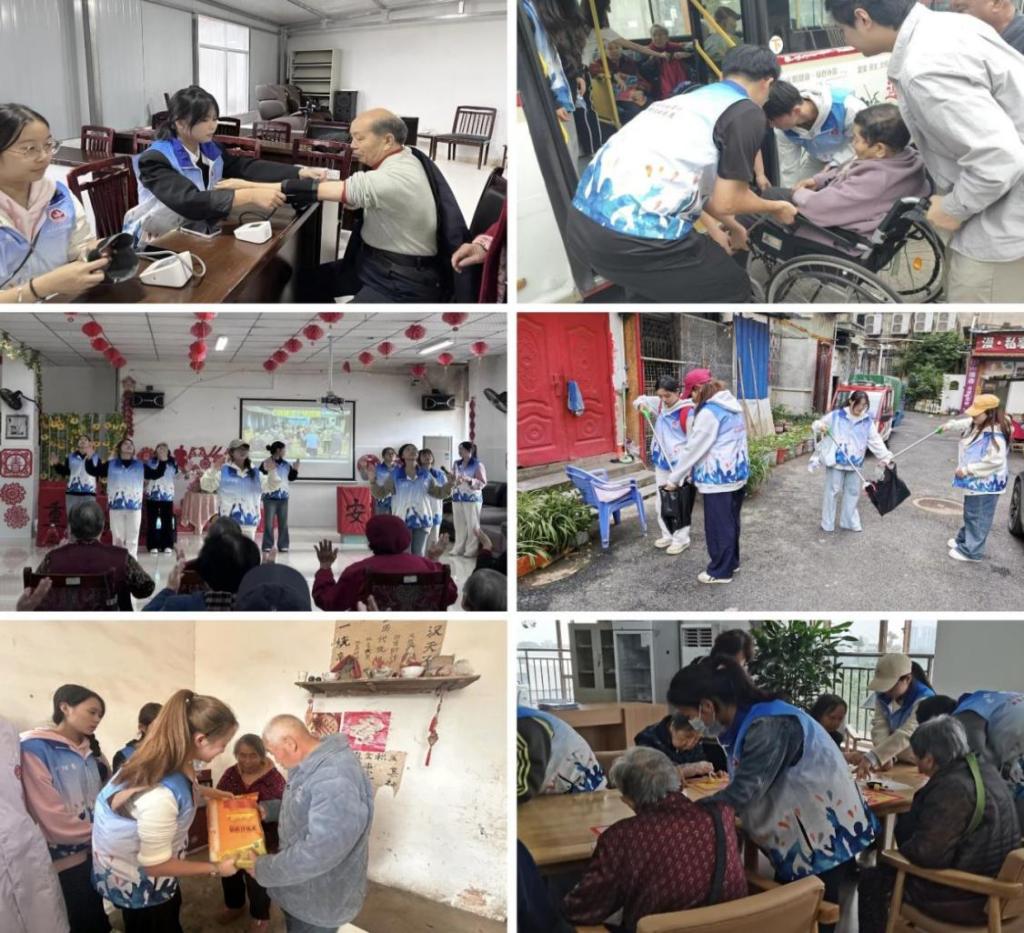 为弘扬中华民族“敬老、爱老、助老”的传统美德,强化医学生的大爱使命担当。10月重阳节期间,护理系志愿服务队携手德阳市老年养护院、第七人民医院、德善居护理中心、福馨养老院、美好明天老年公寓、文庙社区、和新镇英雄岭村等多个志愿服务点,开展16场以“九九重阳节·志愿暖桑榆”为主题的系列志愿服务活动,累计服务600余人次,以实际行动为老人们送上节日温暖。