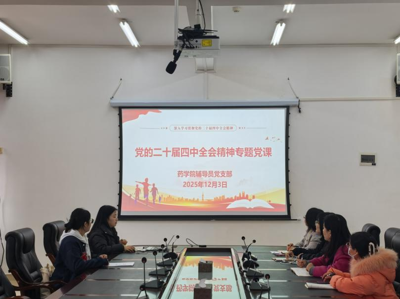 12月3日,药学院辅导员党支部在德阳校区开展专题党课学习,集中学习党的二十届四中全会精神,引导全体党员切实把思想和行动统一到党中央决策部署上来。